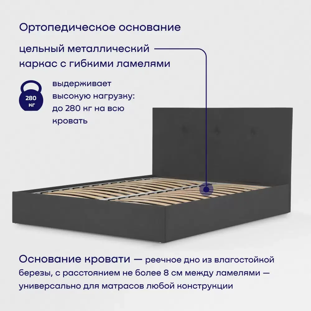 Двуспальная кровать сочетается с матрасами бренда байсон в соответствующих размерах: 140х200, 160х200 и 180х200 см. Дополнительно можно купить наматрасник или защитный чехол, всесезонное одеяло и комплект подушек. buyson: легко выбрать, комфортно спать.