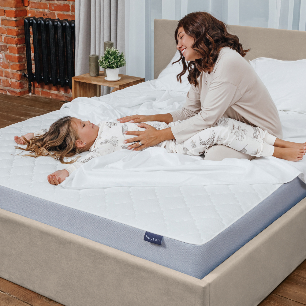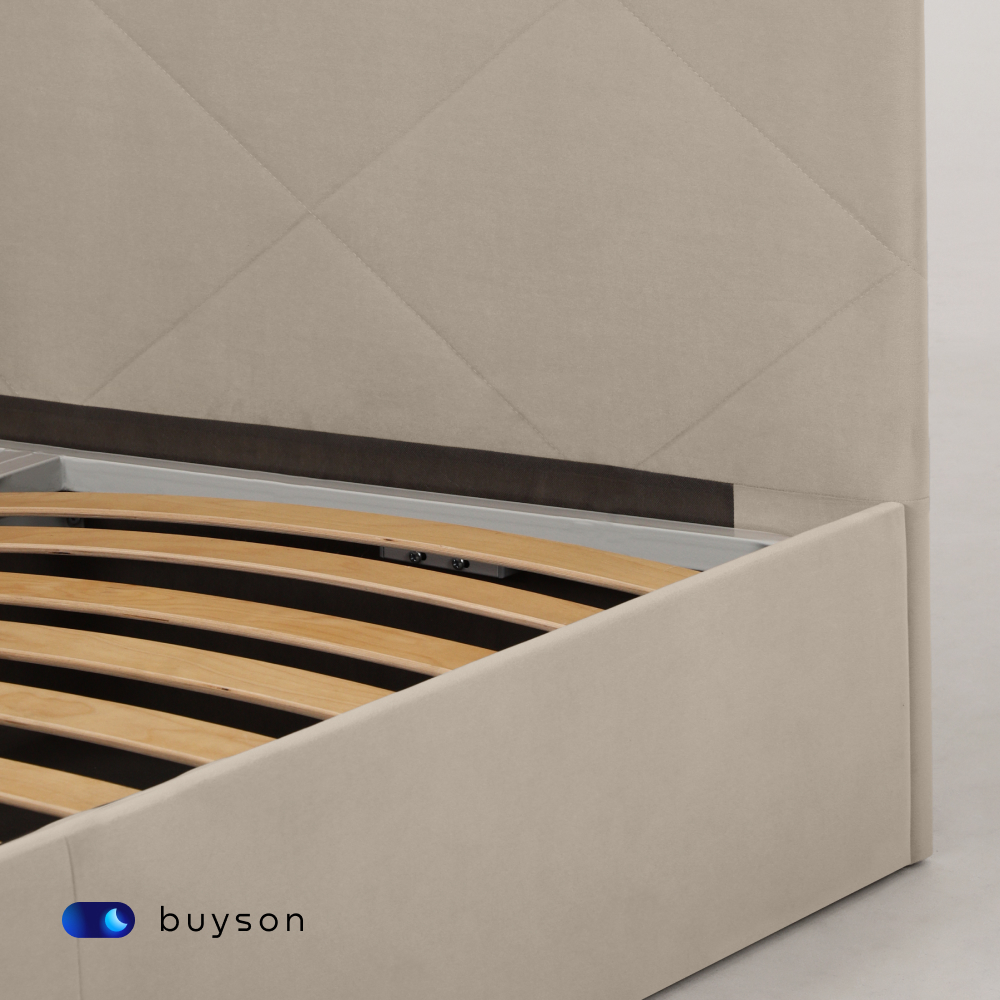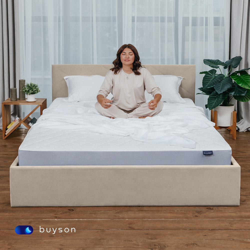 Основание с гибкими ламелями повышает ортопедические свойства матраса (обратите внимание - матрас в комплект не входит, продается отдельно). Если вы планируете купить кровать с матрасом, рекомендуем дополнить покупку матрасом того же бренда buyson в соответствующем размере. С учетом того, что царги кровати невысокие, а матрас немного «утопает» в периметре кровати (на 4,5 см), рекомендуем выбрать матрас повыше – от 14 до 30 см.
