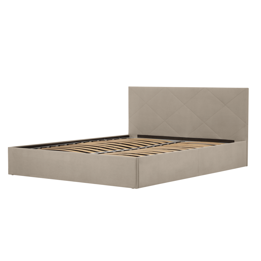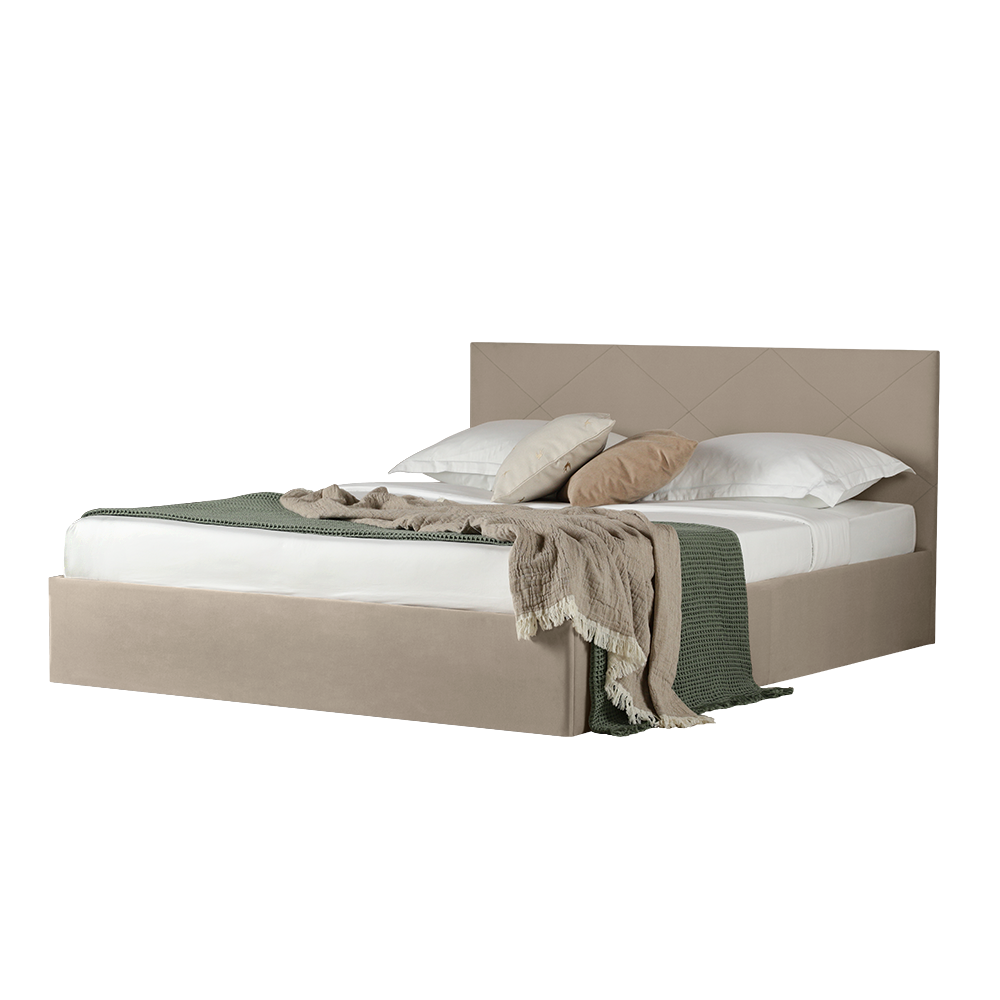 Мягкое изголовье с декоративной ромбовидной прострочкой выполнено, как и вся обивка кровати, из долговечного материала высокого качества – велюра. Мебельный микровелюр – это более технологичный вариант микрофибры. Приятная на ощупь ткань, не притягивает пыль, легко поддается чистке. Покрытие «Soft Touch» придает ткани глубокий матовый оттенок с мягким отблеском, который немного меняется в зависимости от освещения.