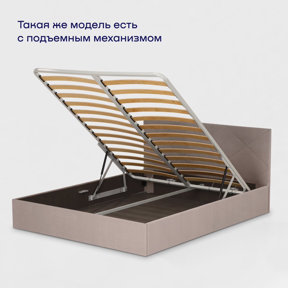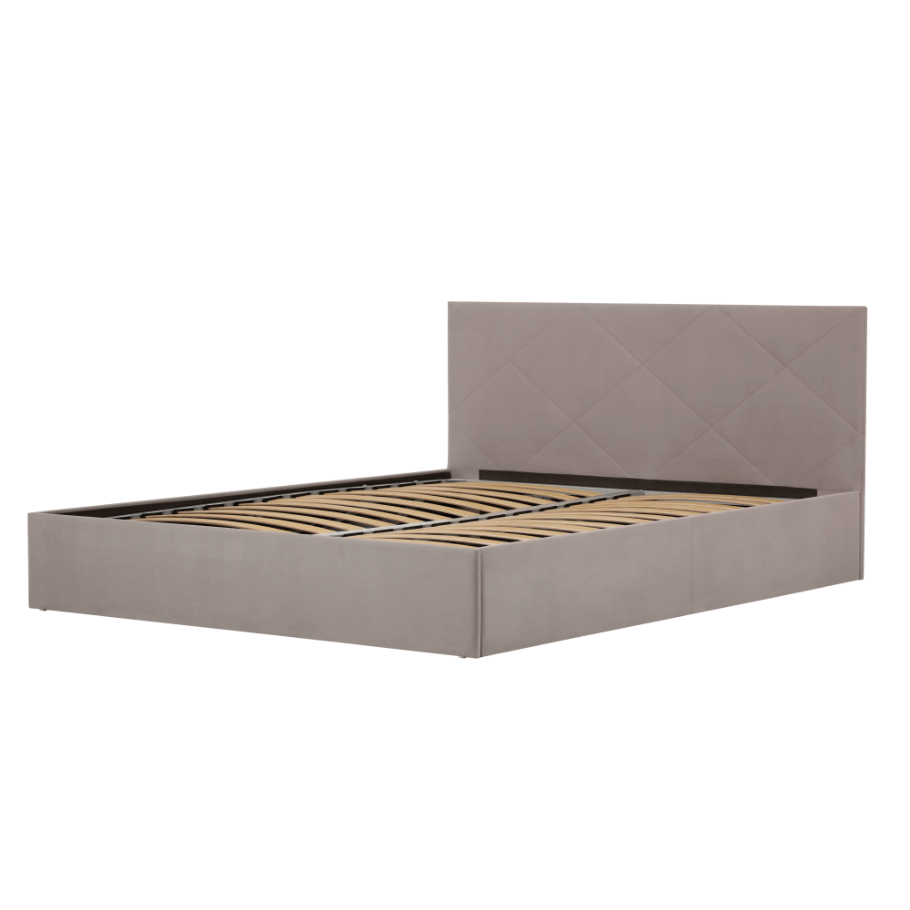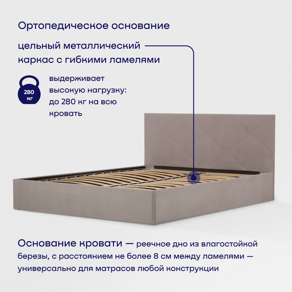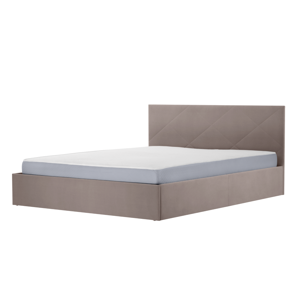 Мягкое изголовье с декоративной ромбовидной прострочкой выполнено, как и вся обивка кровати, из долговечного материала высокого качества – велюра. Мебельный микровелюр – это более технологичный вариант микрофибры. Приятная на ощупь ткань, не притягивает пыль, легко поддается чистке. Покрытие «Soft Touch» придает ткани глубокий матовый оттенок с мягким отблеском, который немного меняется в зависимости от освещения.