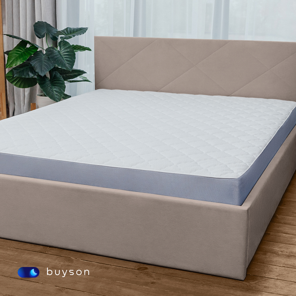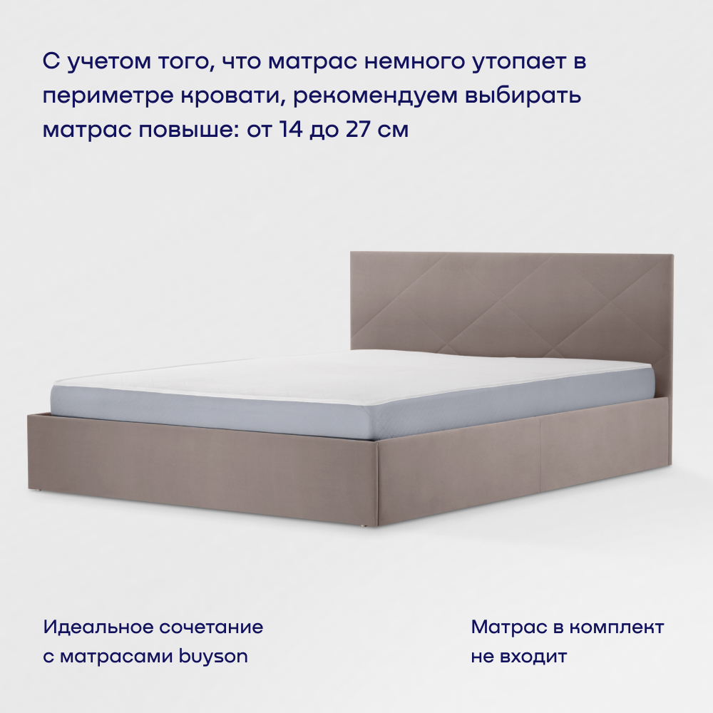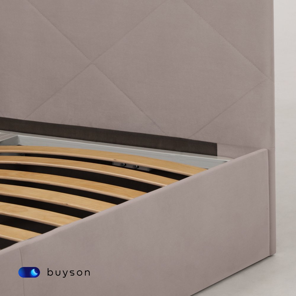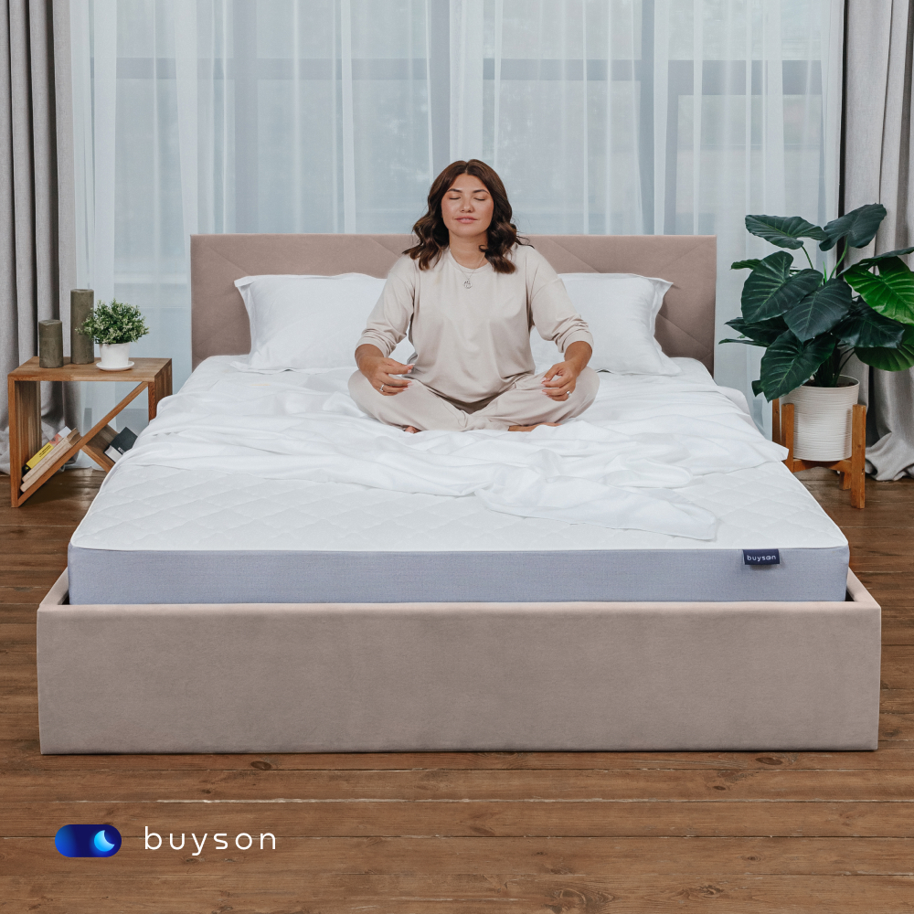 Основание с гибкими ламелями повышает ортопедические свойства матраса (обратите внимание - матрас в комплект не входит, продается отдельно). Если вы планируете купить кровать с матрасом, рекомендуем дополнить покупку матрасом того же бренда buyson в соответствующем размере. С учетом того, что царги кровати невысокие, а матрас немного «утопает» в периметре кровати (на 4,5 см), рекомендуем выбрать матрас повыше – от 14 до 30 см.