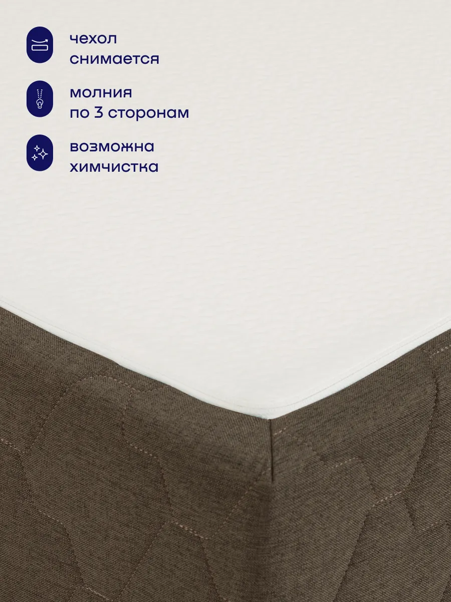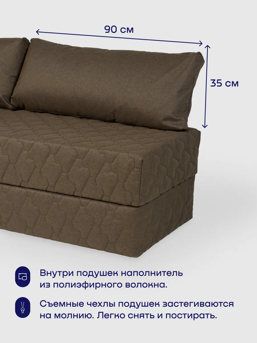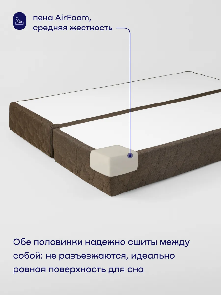 Продуманная конструкция с точки зрения гигиены: в сложенном состоянии спальная поверхность всегда убрана внутрь. Обе половинки надежно сшиты между собой - не разъезжаются и образуют идеально ровное место для сна. За тактильный комфорт отвечает белоснежный трикотаж, приятный на ощупь.