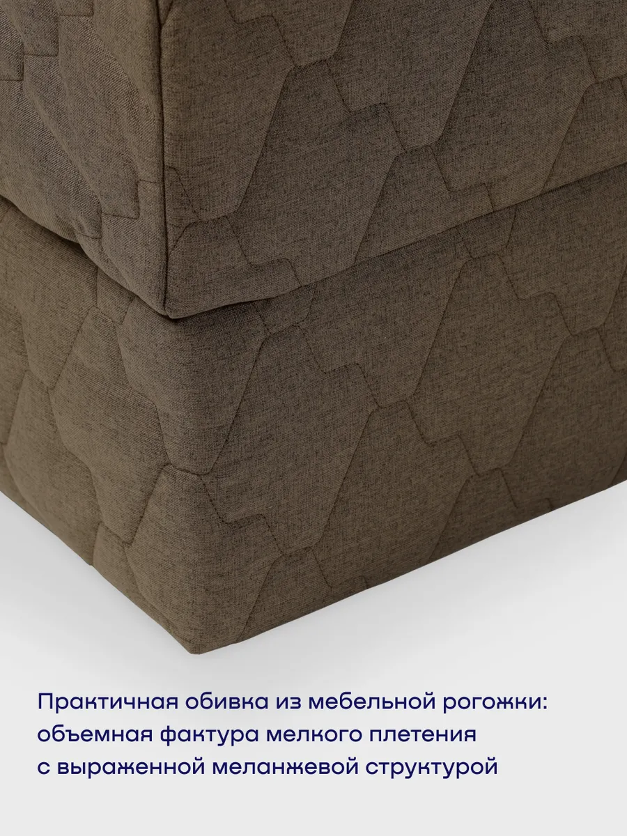 Мягкий диванчик смотрится очень стильно: обивочная ткань из мебельной рогожки в скандинавском стиле. Фактурный материал с выраженной меланжевой текстурой. Доступен в двух цветах: серый и бежевый. Простой уход – достаточно протереть влажной салфеткой. При желании чехол можно снять для химчистки – молния по трем сторонам.
