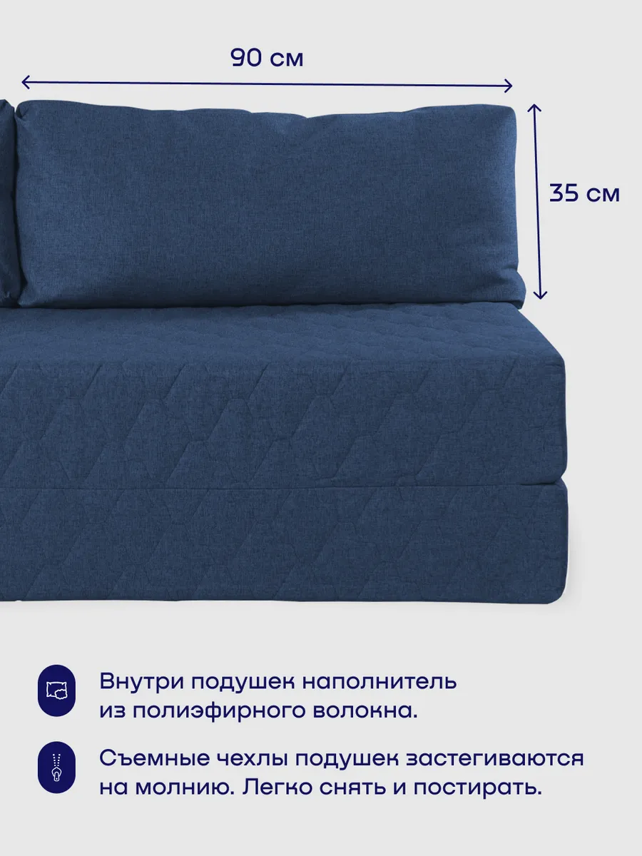 Продуманная конструкция с точки зрения гигиены: в сложенном состоянии спальная поверхность всегда убрана внутрь. Обе половинки надежно сшиты между собой - не разъезжаются и образуют идеально ровное место для сна. За тактильный комфорт отвечает белоснежный трикотаж, приятный на ощупь.