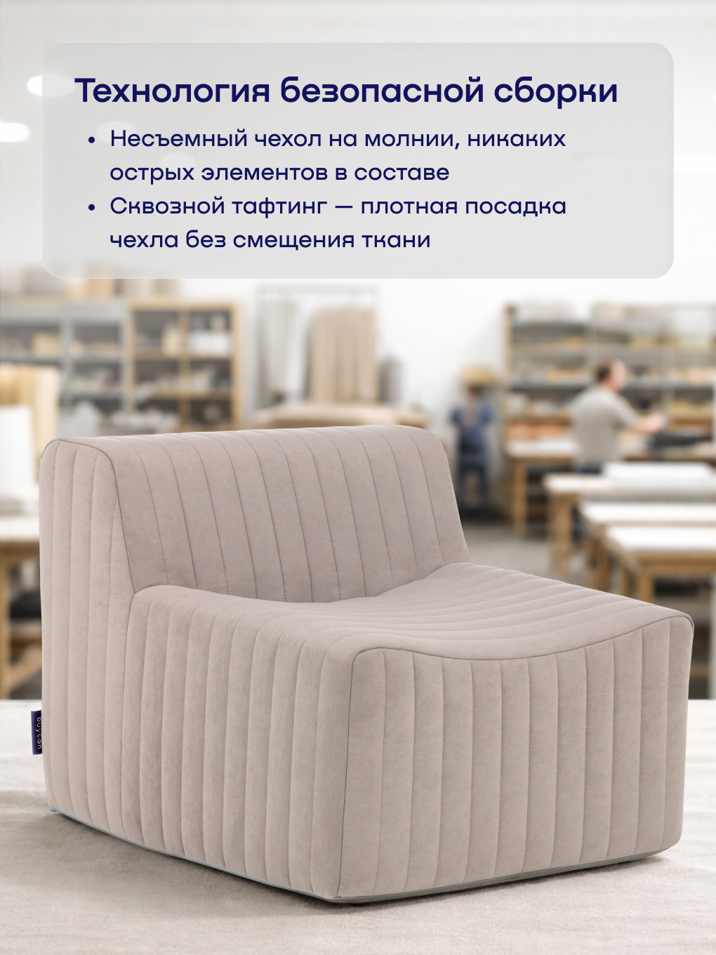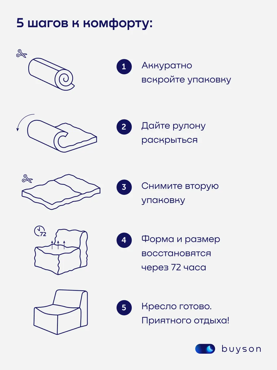 Бескаркасное кресло BuySoft — это свобода перемещения и бескомпромиссный комфорт в каждой детали. Благодаря легкому весу, компактной вакуумной упаковке и отсутствию жестких углов, кресло идеально подходит для современных квартир, детских комнат, загородных домов и даже балконов.