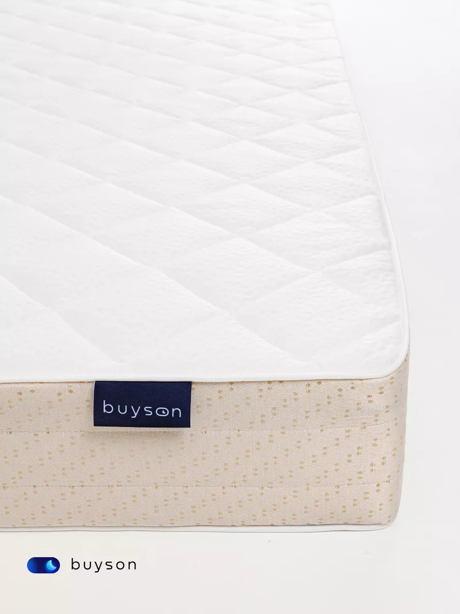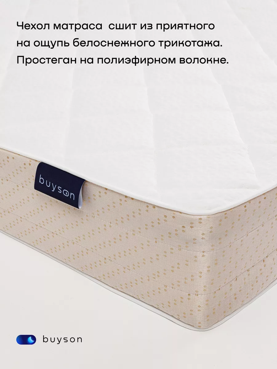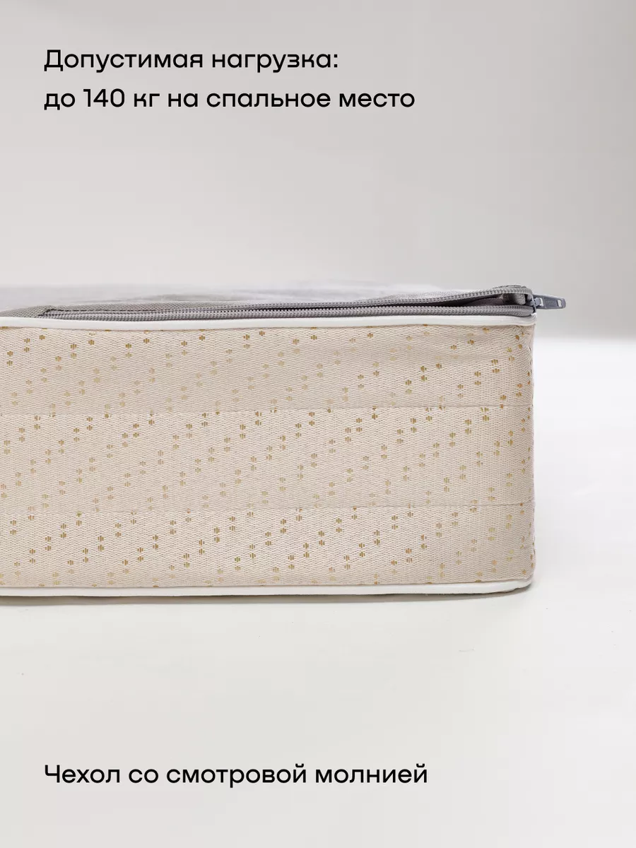 Слой хлопкового войлока изолирует и амортизирует пружины, продлевая срок службы матраса. Белоснежный чехол с жаккардовым бурлетом в нежном кремовом оттенке.