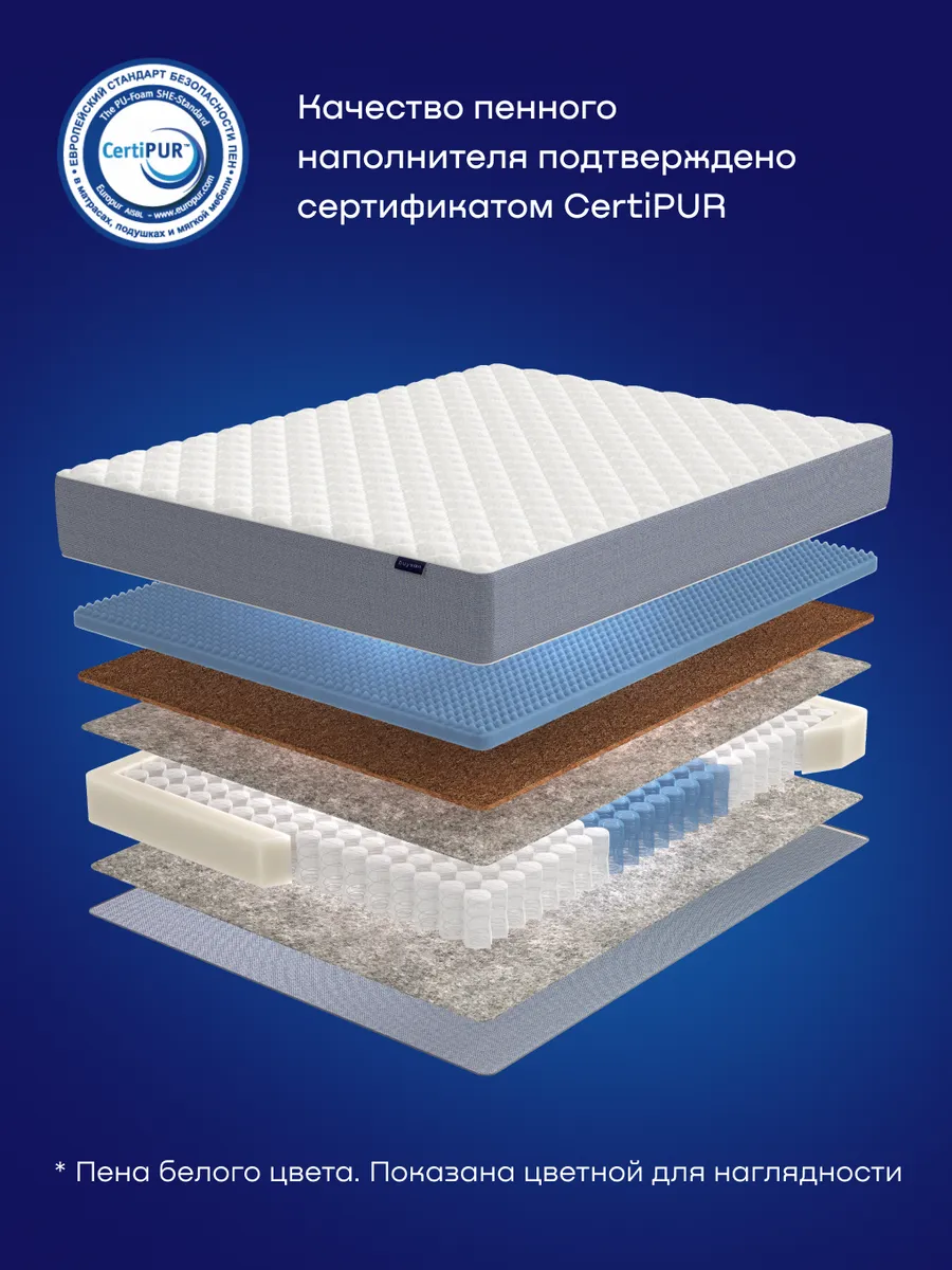 Натуральное кокосовое волокно обеспечивает необходимую жесткость и хороший воздухообмен внутри конструкции. Хлопковый войлок способствует созданию оптимального микроклимата: когда жарко, он дает ощущение прохлады, а в морозы, наоборот, согревает.