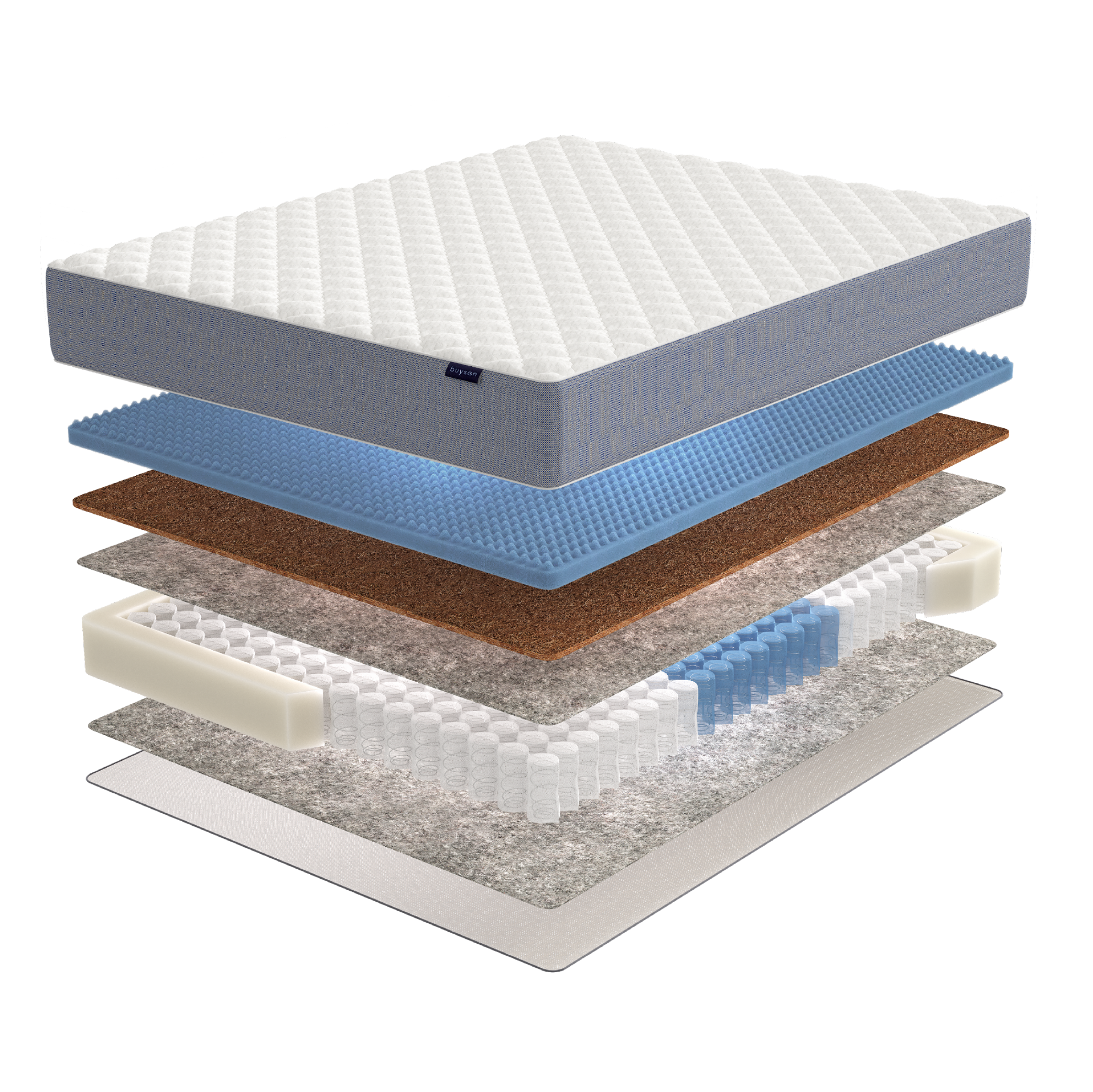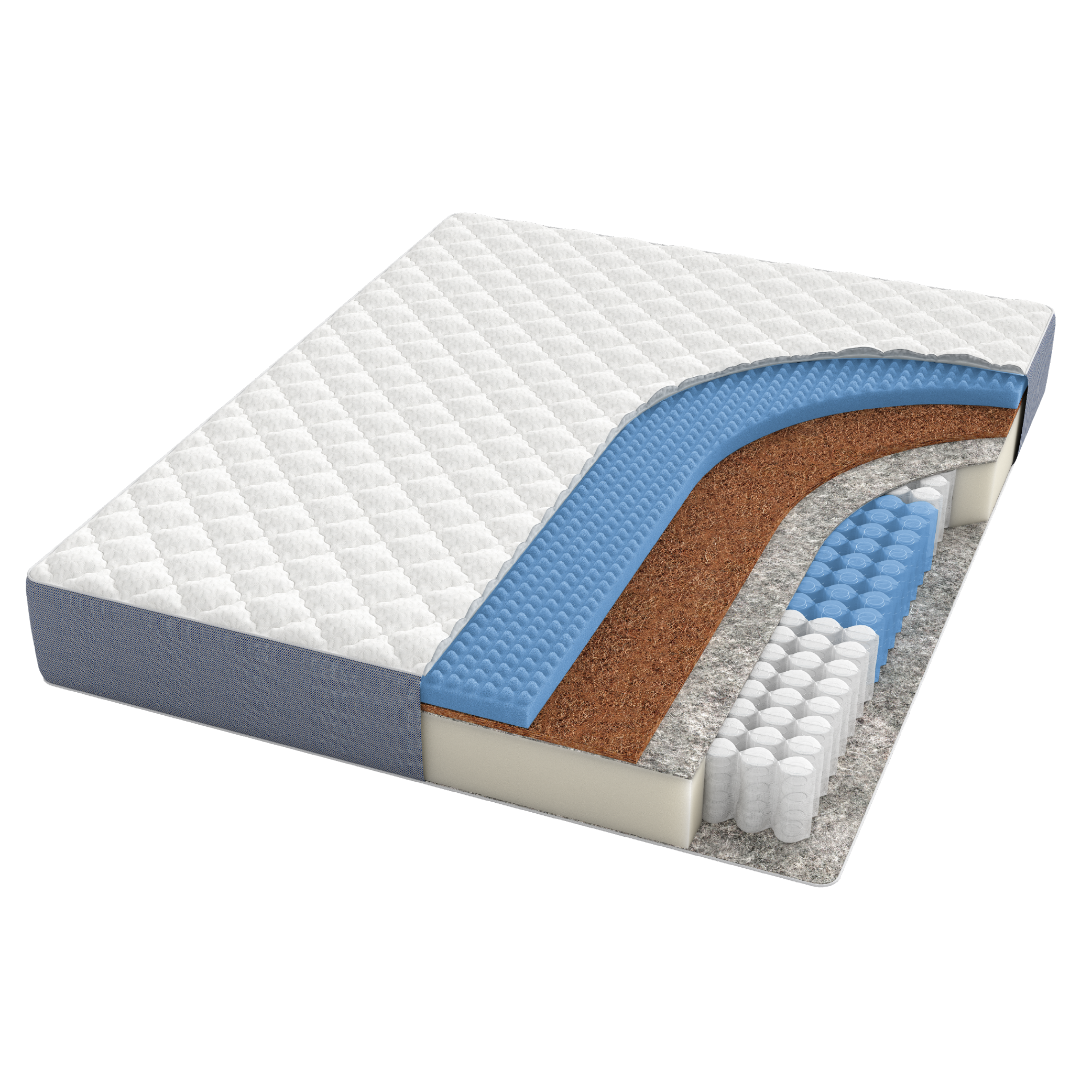 На какие слои, помимо пены и пружинного блока, стоит обратить внимание? Сейчас в тренде экологичные материалы, которые качественно улучшают ортопедические свойства и повышают уровень комфорта. Кокосовая койра отвечает за повышенную жесткость в матрасах и создает более комфортный микроклимат. Это натуральное природное волокно отличается прочностью и эластичностью, хорошо пропускает воздух и устойчиво к влаге. Хлопковый войлок решает сразу несколько задач: укрепляет каркас матраса, повышает упругость всей конструкции, способствует хорошему воздухообмену и обладает прекрасной способностью терморегуляции: летом такой матрас лучше держит прохладу, а зимой помогает аккумулировать тепло.