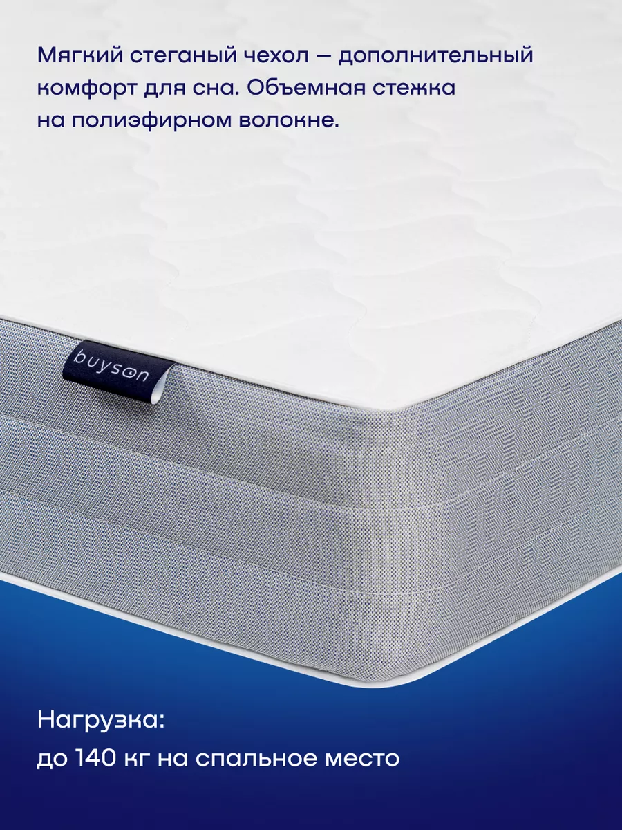 Фильтры помогут отсортировать товары по ключевым характеристикам в зависимости от ваших ожиданий, чтобы отобрать лучшие предложения именно для вас. Важные параметры – конструкция блока (пружинный матрас или без пружин), дополнительные слои и жесткость. Матрасы с пружинами Bonnel и Pocket обеспечивают точечную поддержку позвоночника, а вязкоэластичная анатомическая пена подарит невероятный комфорт. Мечтаете наконец выспаться? С матрасами buyson это проще простого!