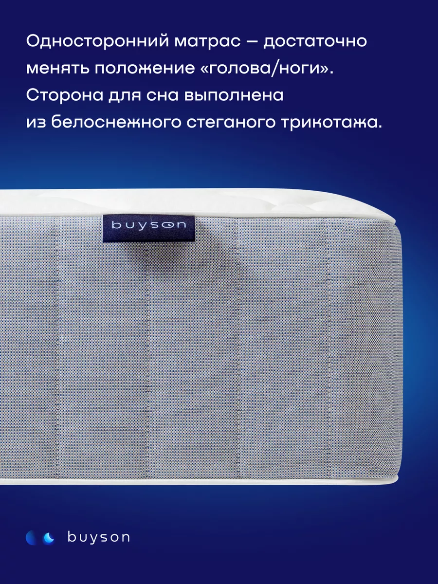 Фильтры помогут отсортировать товары по ключевым характеристикам в зависимости от ваших ожиданий, чтобы отобрать лучшие предложения именно для вас. Важные параметры – конструкция блока (пружинный матрас или без пружин), дополнительные слои и жесткость. Матрасы с пружинами Bonnel и Pocket обеспечивают точечную поддержку позвоночника, а вязкоэластичная анатомическая пена подарит невероятный комфорт. Мечтаете наконец выспаться? С матрасами buyson это проще простого!