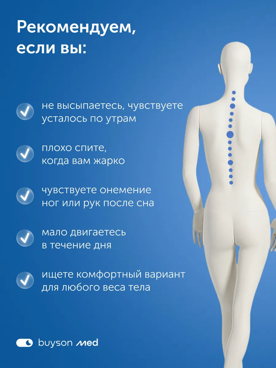 состояние позвоночника. Важно, чтобы во сне спина занимала анатомически правильное положение: не должно быть провисания или прогиба в пояснице. Изделие не должно быть слишком мягким или жёстким, иначе мышцы будут в неестественном, зажатом состоянии;