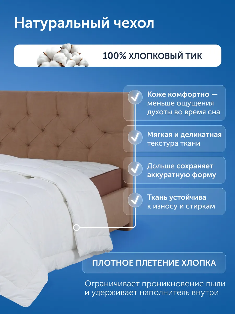 Одеяло подойдёт, если вам становится жарко ночью, вы чувствительны к синтетическим тканям и ищете универсальный вариант на весь год. Подходит при ночной потливости, чутком сне и как альтернатива пуховым наполнителям.