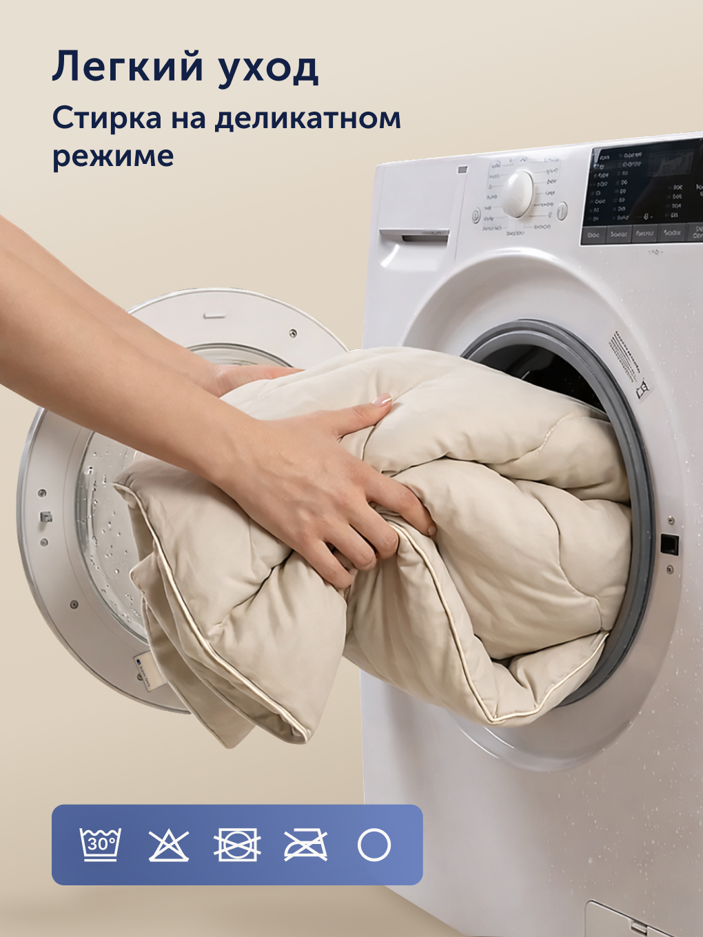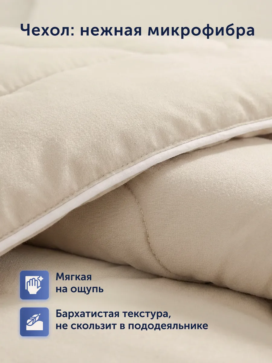 Чехол одеяла изготовлен из мягкой микрофибры, которая приятна на ощупь и не шуршит. Стеганый чехол предотвращает деформацию утепленного одеяла и миграцию материала – наполнитель равномерно распределен по периметру и не скатается. Легкий уход: допускается машинная стирка в деликатном режиме.