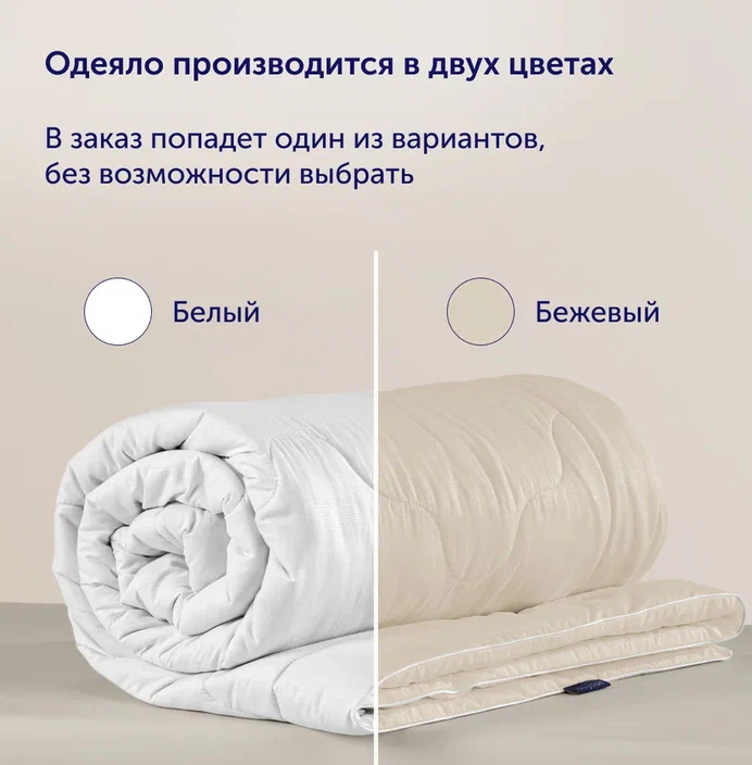 Обратите внимание! Одеяло производится в двух цветах. Оттенок товара не выбирается. Вы получите либо бежевый, либо белый вариант, который будет определён при сборке заказа.