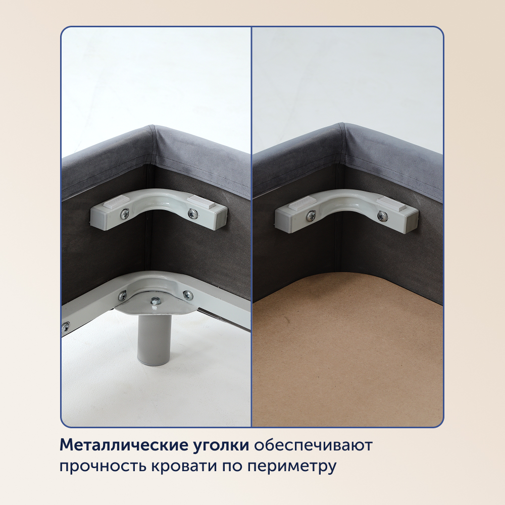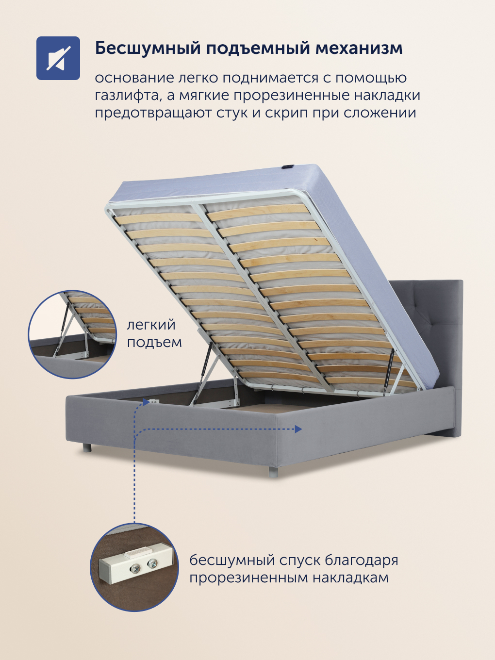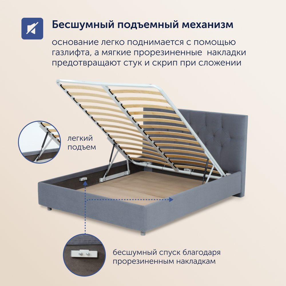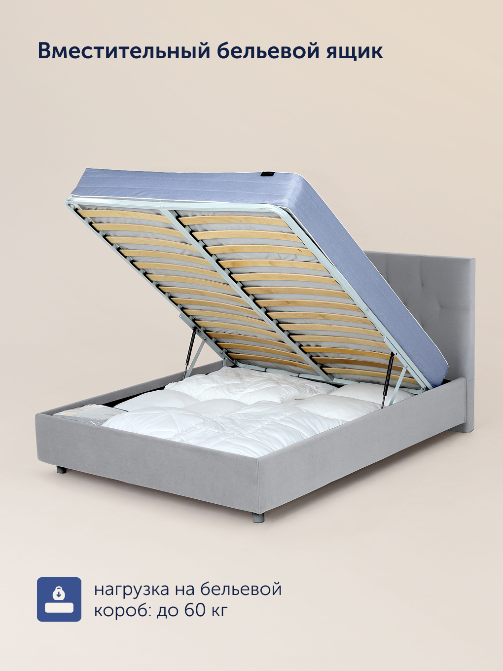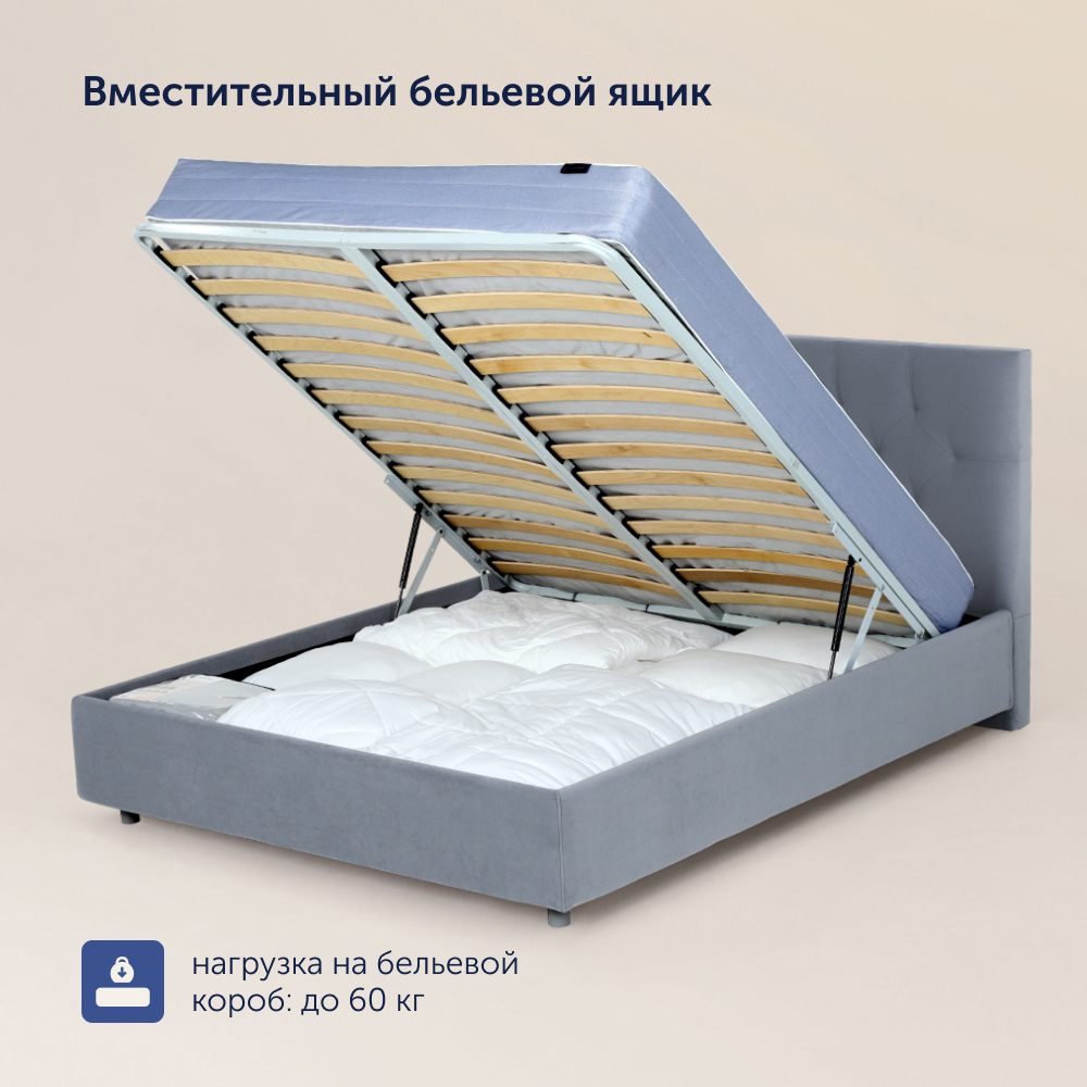 Легкий и практичный уход — съемные чехлы по бокам кровати позволяют при необходимости снять часть обивки и сдать в химчистку. Такую опцию особенно оценят владельцы домашних питомцев, а также родители маленьких детей.
