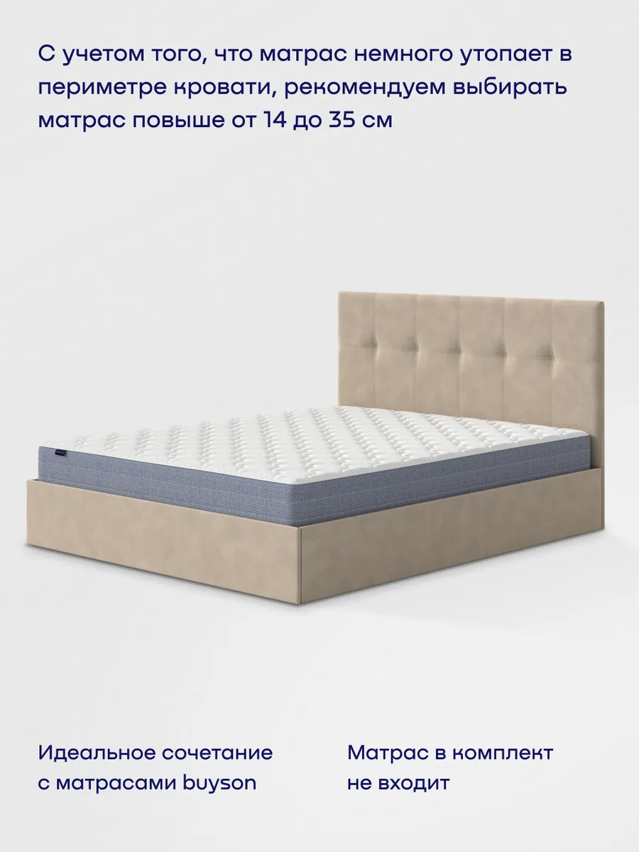 Двуспальная кровать БайДрим сочетается с матрасом бренда байсон в соответствующем размере: 140 на 200, 160 на 200 и 180 на 200 см (в комплект не входит). Дополнительно можно купить наматрасник или защитный чехол, всесезонное одеяло и комплект подушек. buyson: легко выбрать, комфортно спать.