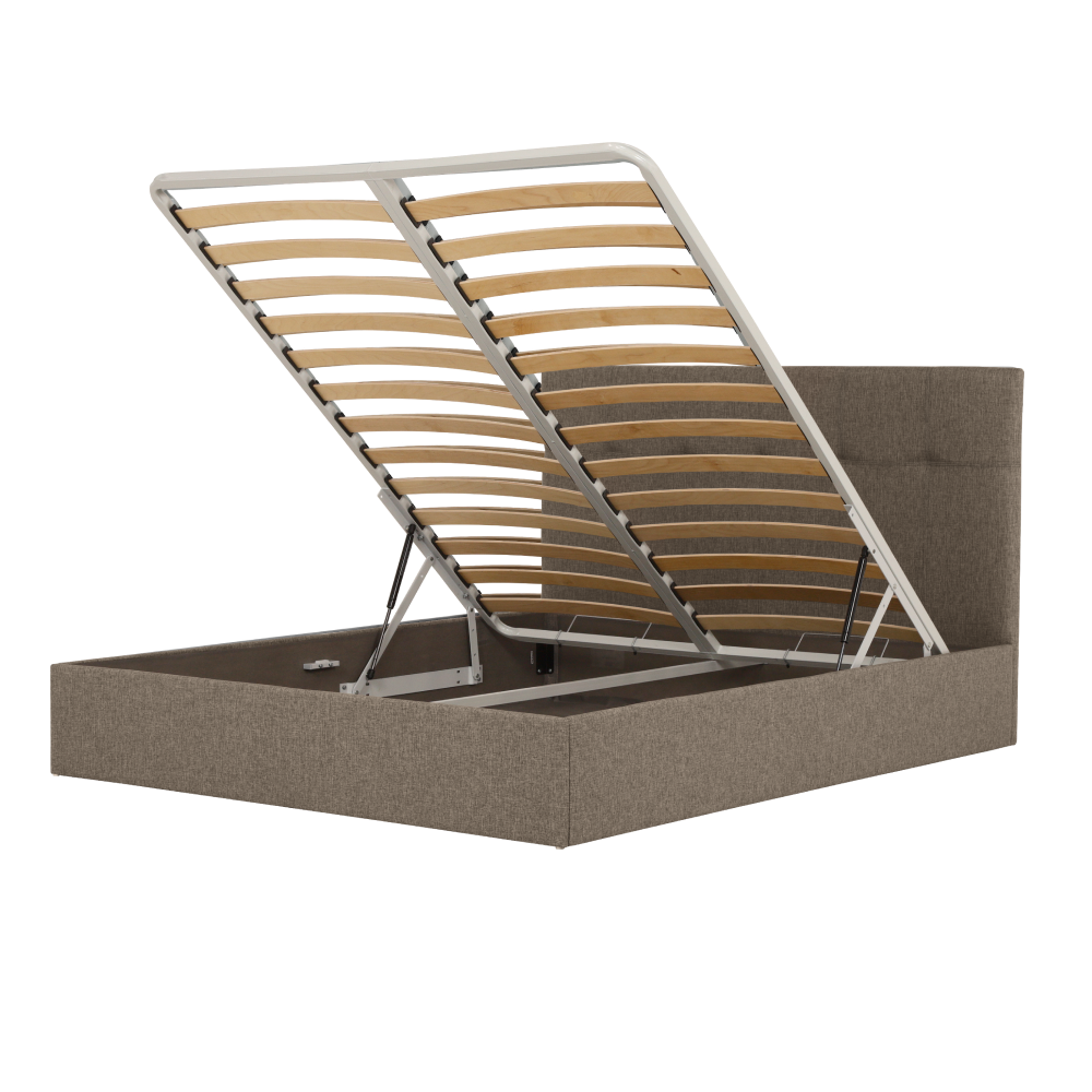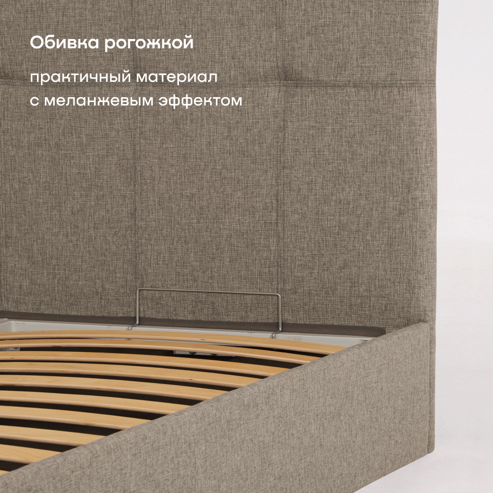 Ортопедическое основание с гибкими ламелями надежно фиксирует положение матраса и усиливает его ортопедические свойства. Под основанием кровати предусмотрено дополнительное место для хранения: бельевой короб.