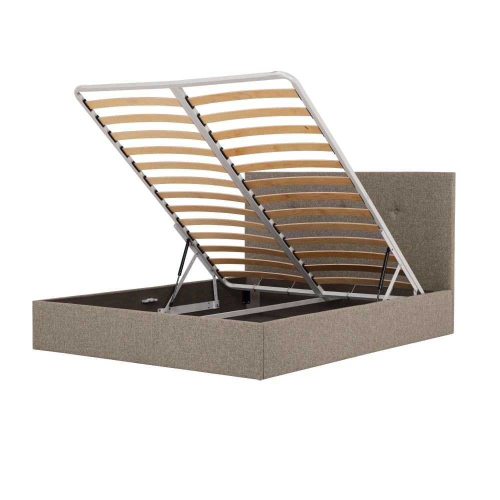 Кровать с подъемным механизмом позволяет решить вопрос хранения вещей: под основанием предусмотрено дополнительное место, куда можно убрать постельное белье, детские игрушки и т.д. – вместительный бельевой ящик по всему периметру кровати.