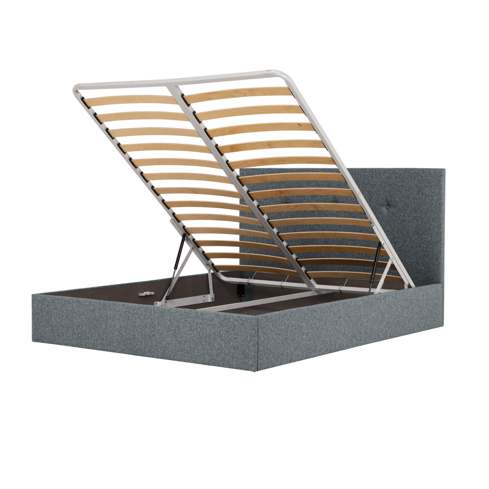 Кровать с подъемным механизмом позволяет решить вопрос хранения вещей: под основанием предусмотрено дополнительное место, куда можно убрать постельное белье, детские игрушки и т.д. – вместительный бельевой ящик по всему периметру кровати.