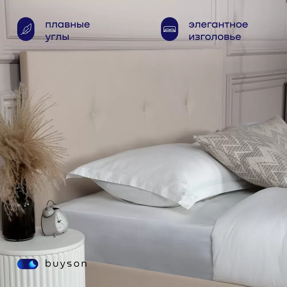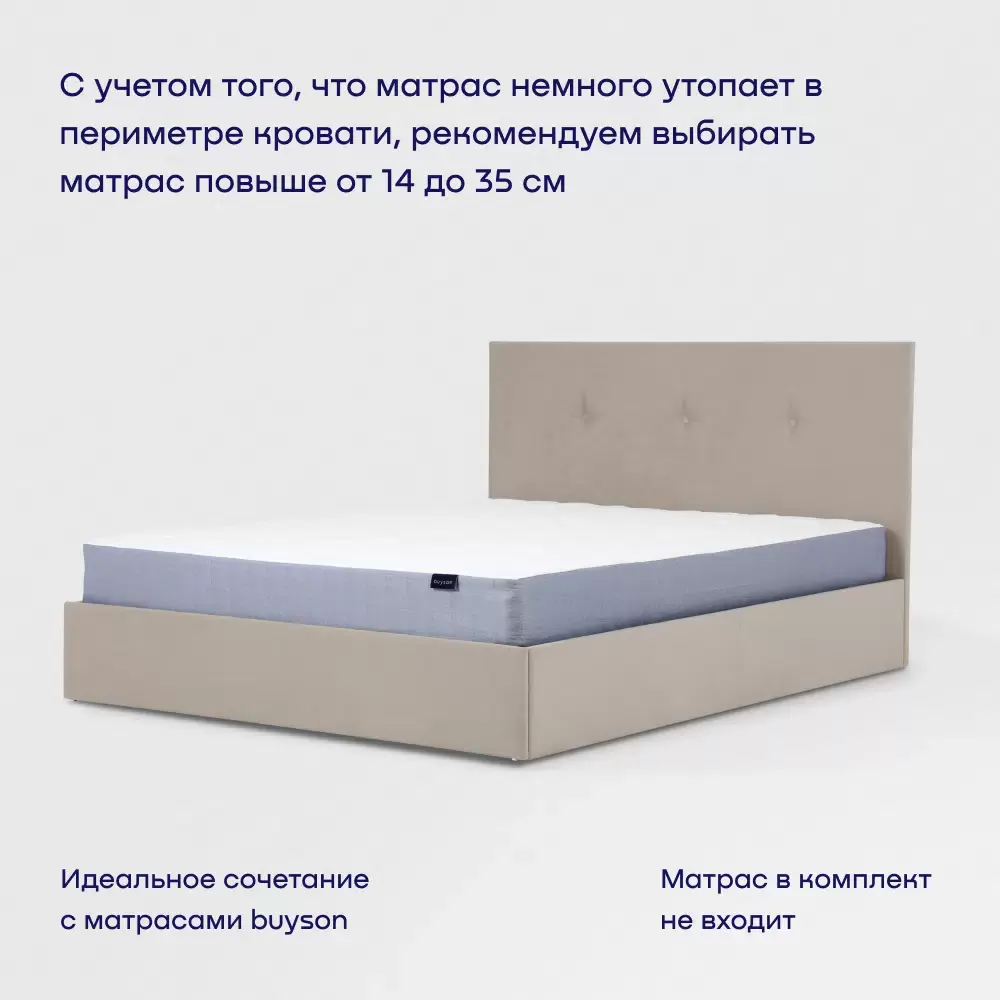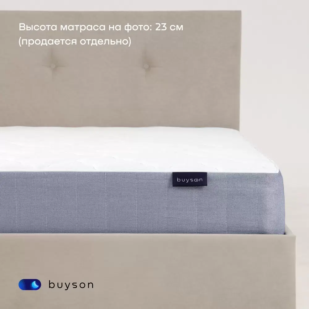 Ортопедическое основание с гибкими ламелями повышает ортопедические свойства матраса (обратите внимание - матрас в комплект не входит, продается отдельно). Если вы планируете купить кровать с матрасом, рекомендуем дополнить покупку матрасом того же бренда buyson в соответствующем размере. С учетом того, что царги кровати невысокие, а матрас немного «утопает» в периметре кровати (на 5,5 см), рекомендуем выбрать матрас повыше – от 14 до 30 см.