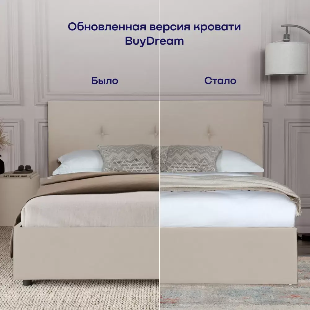 BuyRelax – сбалансированная линейка для расслабляющего сна. Оптимальное соотношение цена/качество. Средний ценовой сегмент и более технологичный ассортимент: зональный ортопедический матрас, кровать с двумя опциями – с подъемным механизмом и без. Набивные подушки с натуральным по составу наполнителем – латексом. Дополняет капсулу хлопковое постельное белье: перкаль в нежных трендовых расцветках.